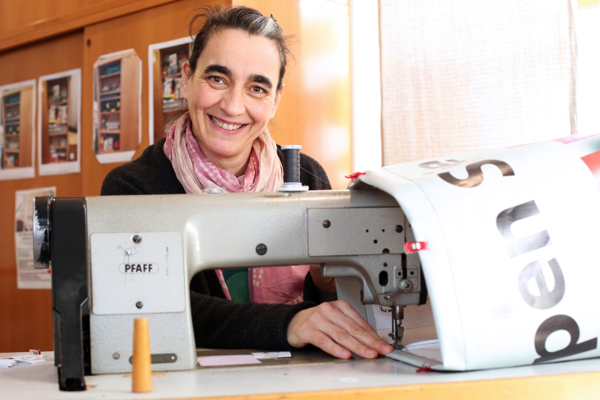 Zusammen mit Designerin Daniela Unger von bandha in Altlengbach entstehen daraus Kooperationsprojekte: Unger fertigt aus denselben Materialien — Vorhängen, Sofastoffen, Veranstaltungsbannern — Rucksäcke und Alltagsprodukte, jedes Stück ein Unikat. Zwei Frauen, zwei Orte, ein Prinzip.⁷