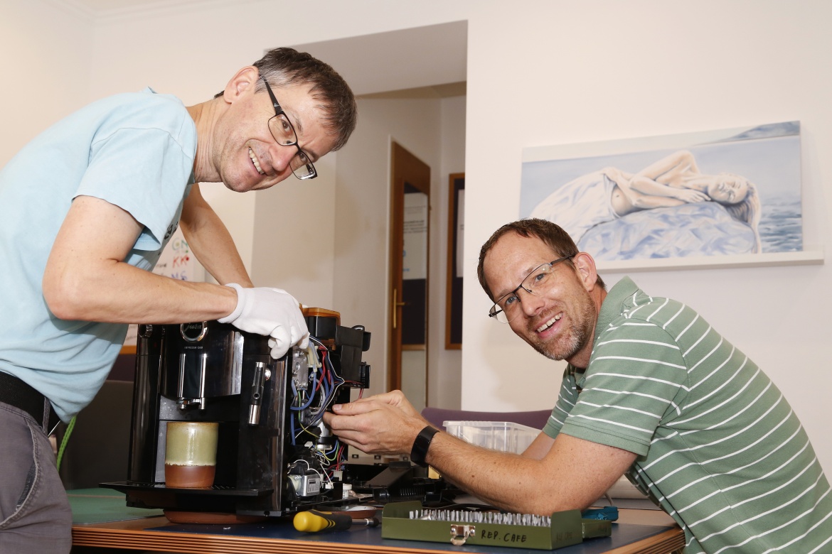 Ein Mixer liegt offen auf dem Tisch. Schraubenzieher, Kaffeeduft, Stimmengemurmel. Im Repair Café Neulengbach beugen sich zwei Menschen über ein Gerät, das eigentlich schon abgeschrieben war — vom Besitzer, vom Müllkalender, von der Wegwerflogik. Zwanzig Minuten später läuft es wieder.